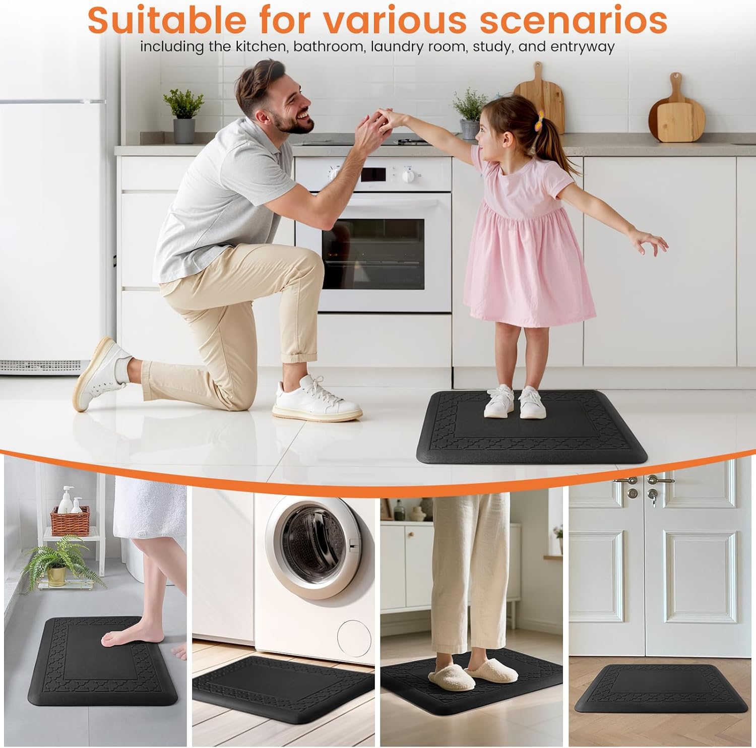 Multi-use Floor Mat: the kitchen mats for floor are ideal for use as a standing desk mat, laundry room mat or anti-fatigue mats for kitchen floor; our kitchen rug will add comfort and fashion when you need to stand for a long time