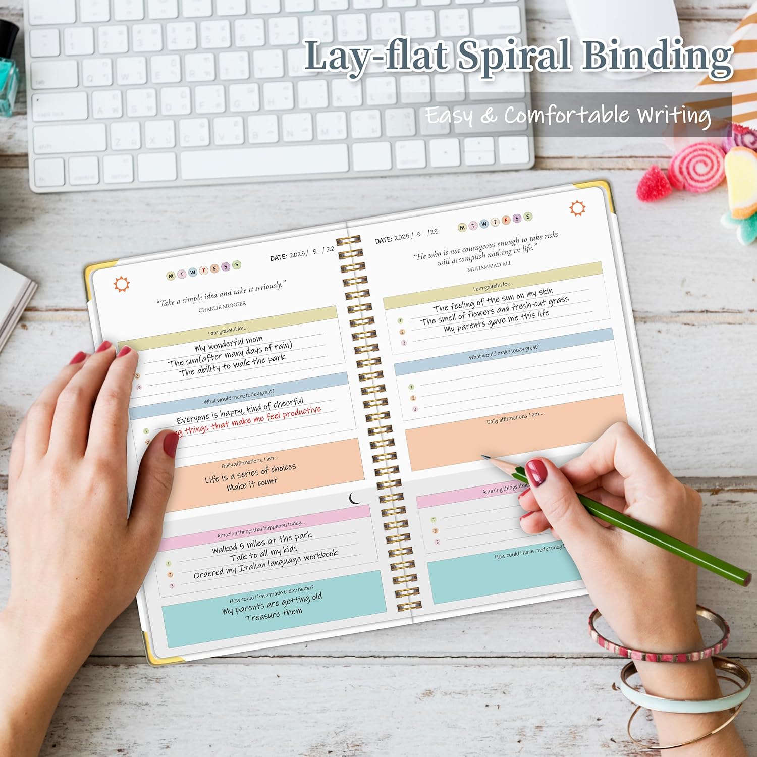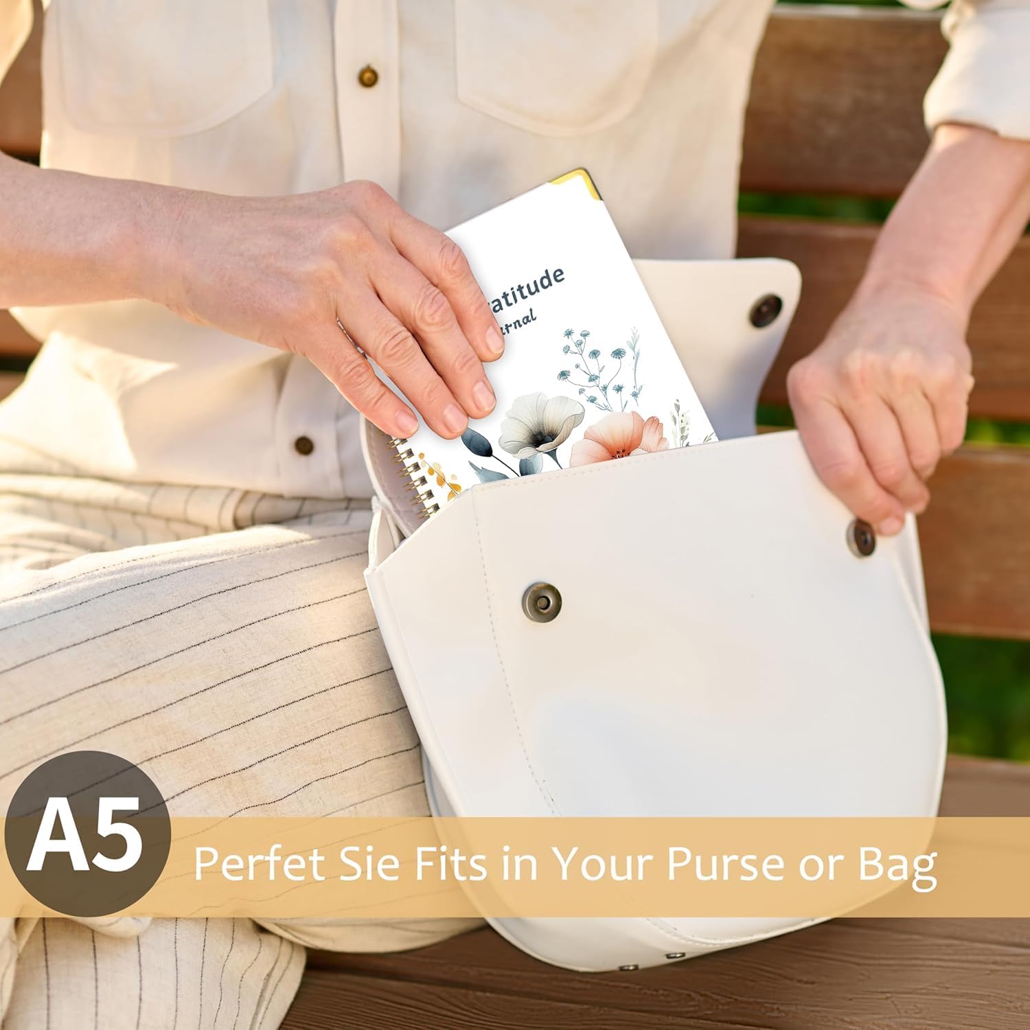 Gratitude Journal with Cardboard Cover ,Vivid Colorful Layout Design for Women ,Teens, 5 Miunte Daily Gratitude Journal with Prompts, Undated Hardcover Journals for More Happiness, Mindfulness & Reflection, Daily Affirmations, Spiral Binding ( Floral )