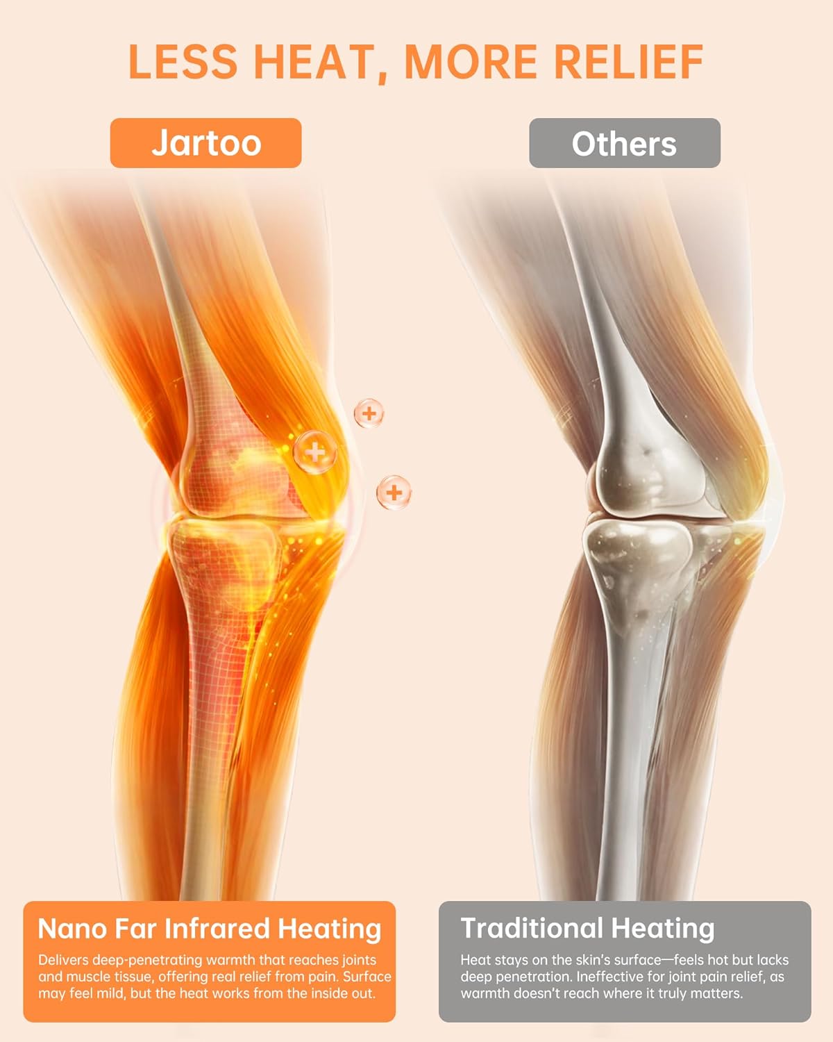 Jartoo’s nano far infrared heat penetrates deep into muscles and joints, relieving pain from the inside out. Unlike traditional pads that feel hotter on the skin but only warm the surface, Jartoo heals where it matters—without overheating.