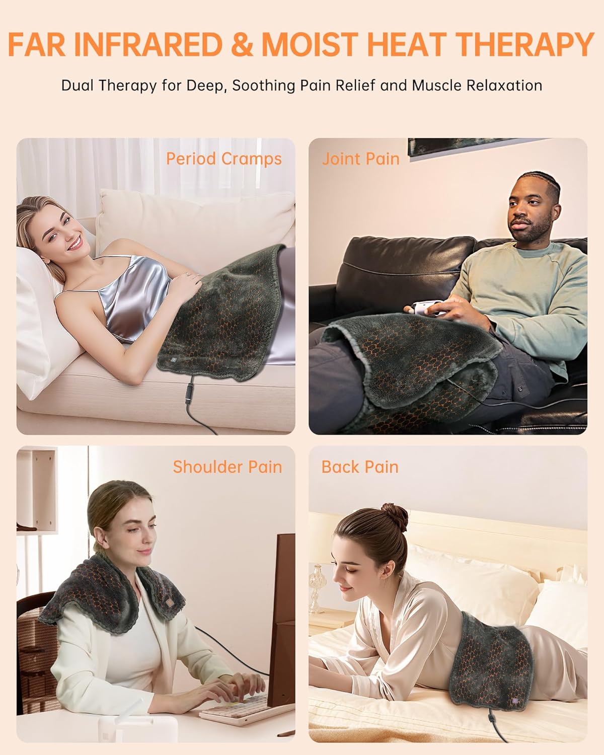 More Efficient Pain Relief: Achieves far-infrared rapid heating in just 30s with a power consumption of only 30W, making it 80% more energy-efficient than other heating pads, saving about 1 kWh per day. The heat penetrates deeply into the skin and joints through infrared, without causing dryness. It helps effectively relieve menstrual cramps, back pain, neck pain, shoulder aches, and other joint discomfort.