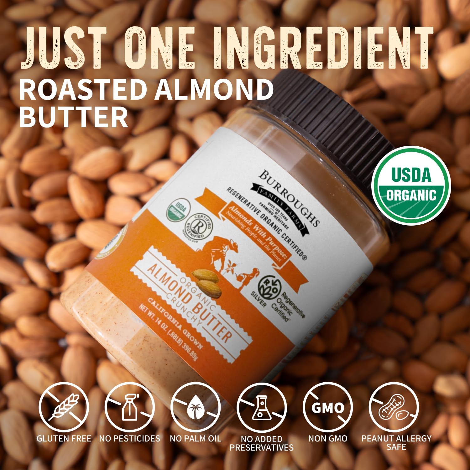 USDA Organic Crunchy Almond Butter, 14 oz – No Palm Oil, No Sugar Added Almond Nut Butter – 2x the Antioxidants and Vitamin B Versus Other Nut Butter – First Regenerative Organic Certified